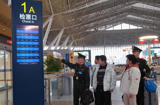 在摩肩接踵排隊(duì)的進(jìn)站口,排長韋朝旺正在檢查旅客進(jìn)站情況,安排執(zhí)勤戰(zhàn)士攙扶行動不便的老人,幫助抱孩子的婦女提行李,組織大家安全有序進(jìn)站。應(yīng)急力量在車站重點(diǎn)區(qū)域值守,遇到旅客滯留、大客流擁擠等情況時(shí),協(xié)同車站工作人員和公安民警及時(shí)處理。