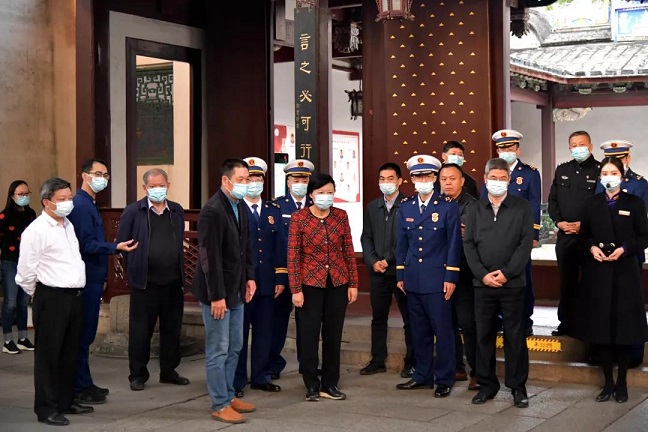 檢查組一行前往鼓樓區(qū)南街街道、三坊七巷消防救援站、消防重點單位古厝點林則徐紀念館等,實地檢查消防安全責任落實、消防救援隊伍建設、消防救援設備保障、重點場所消防工作開展等情況。