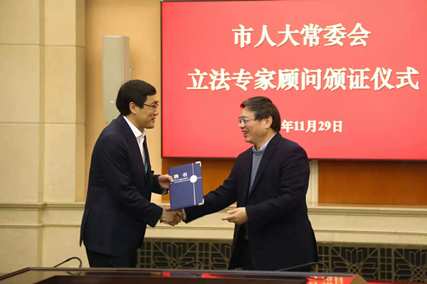 原標(biāo)題:市人大常委會(huì)舉行聘請(qǐng)立法專(zhuān)家顧問(wèn)頒證儀式,蔣卓慶出席
