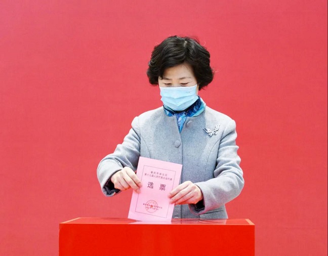 重慶市人大常委會(huì)主任張軒填寫(xiě)選票。