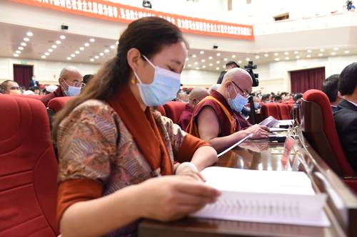 1月20日上午9時,青海省政協(xié)十二屆五次會議在青海會議中心開幕。以本民族傳統(tǒng)服飾亮相的少數(shù)民族委員,無疑成為了一道最亮麗的風(fēng)景。 肖芳 攝