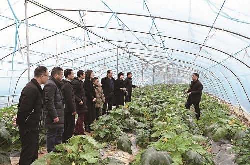 近日,江西省上猶縣政協(xié)組織委員通過實地看、現(xiàn)場議、聽匯報等形式,調(diào)研富硒蔬菜產(chǎn)業(yè)發(fā)展。圖為政協(xié)委員在營前鎮(zhèn)大棚蔬菜基地調(diào)研。張聲華 攝