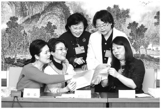 3月8日下午,全國政協(xié)十三屆五次會議舉行小組會議討論“兩高”報告。圖為無黨派人士界別小組會議散會后,謝茹、劉紅宇、甄貞、夏宇紅、蔣穎(從左至右)多位委員就司法為民、公正司法的工作理念繼續(xù)開展討論。 郭海鵬 攝