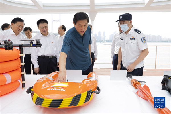 6月30日至7月4日,中共中央政治局常委、全國人大常委會委員長栗戰(zhàn)書率全國人大常委會執(zhí)法檢查組在湖北檢查長江保護法實施情況。這是7月3日,栗戰(zhàn)書在漢口江灘碼頭考察長江大保護工作情況。新華社記者?黃敬文?攝