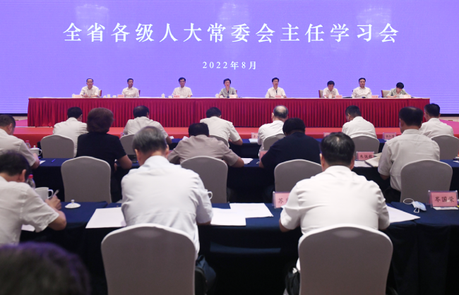 8月8日至10日,全省各級(jí)人大常委會(huì)主任學(xué)習(xí)會(huì)在杭州市舉行。省委書(shū)記、省人大常委會(huì)主任袁家軍親切看望與會(huì)人員,并作了重要講話。省政府王浩省長(zhǎng)圍繞當(dāng)前我省經(jīng)濟(jì)社會(huì)發(fā)展形勢(shì)作了專題報(bào)告。省人大常委會(huì)黨組書(shū)記、副主任梁黎明在會(huì)議結(jié)束時(shí)作了講話,提出任務(wù)要求。