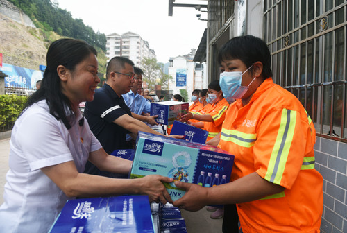 日前,廣西壯族自治區(qū)桂林市龍勝各族自治縣政協(xié)組織政協(xié)委員到縣環(huán)衛(wèi)站、縣交警大隊(duì)、桂三高速管理中心,開展“助力創(chuàng)城·政協(xié)委員送清涼”活動(dòng),看望慰問(wèn)在高溫天氣下堅(jiān)守崗位的一線工作者,送上礦泉水等防暑用品。吳生斌 攝