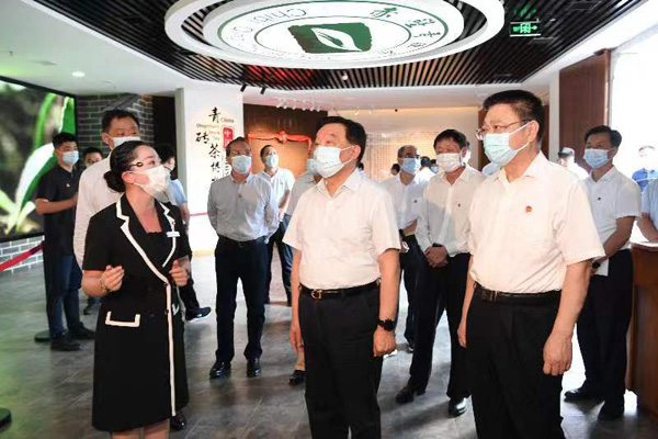 8月16日至18日,中共中央政治局委員、全國人大常委會副委員長王晨率全國人大常委會執(zhí)法檢查組在湖北進行鄉(xiāng)村振興促進法執(zhí)法檢查。這是8月18日,王晨一行在赤壁市趙李橋鎮(zhèn)羊樓洞村的中國青磚茶博物館,了解青磚茶產(chǎn)業(yè)發(fā)展和文化傳承等情況。攝影/陳跡