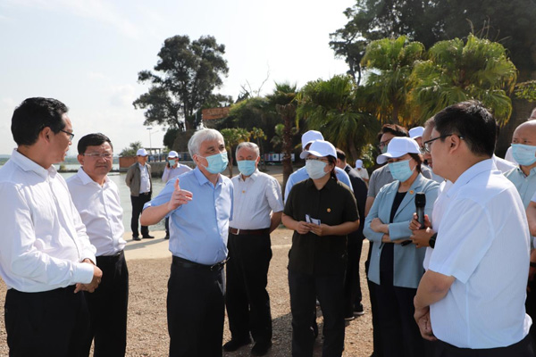 8月17日,全國人大常委會副委員長丁仲禮(左三)率全國人大常委會執(zhí)法檢查組在昆明海晏村落詳細(xì)了解滇池重點水域“十年禁漁”工作情況。馮添?攝