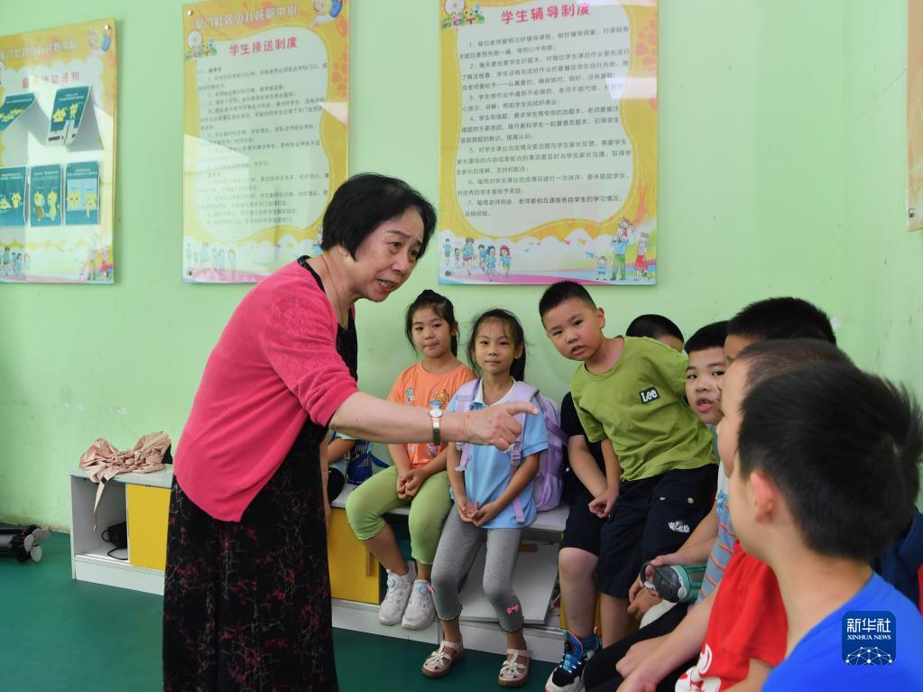 在福建省福州市軍門社區(qū)少兒托管中心,林丹與放學(xué)歸來的孩子們交流(2022年9月14日攝)。新華社記者 姜克紅 攝