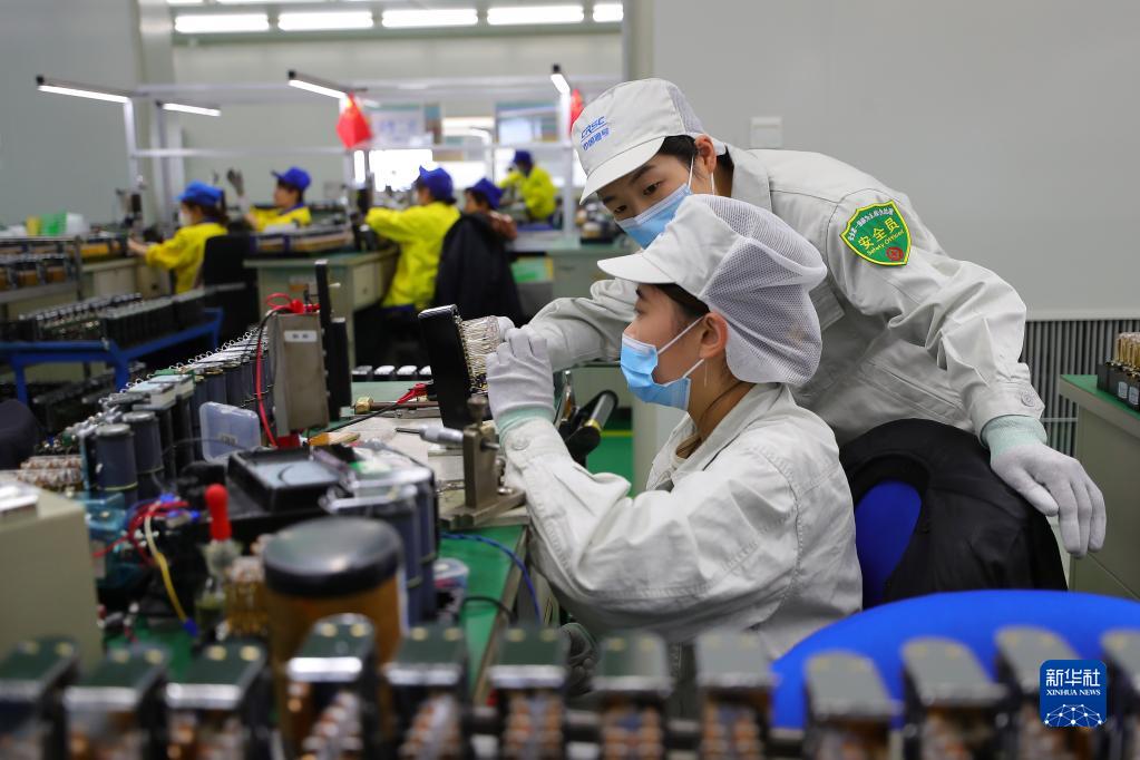 柯曉賓在沈陽(yáng)鐵路信號(hào)有限責(zé)任公司電器中心車間指導(dǎo)班組成員調(diào)試?yán)^電器(2022年9月7日攝)。新華社記者 楊青 攝