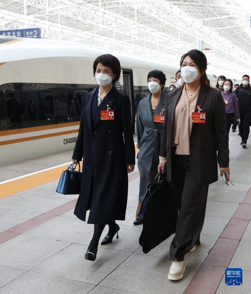 10月13日,來自內蒙古自治區(qū)的黨的二十大代表乘高鐵抵達北京北站。新華社記者 張玉薇 攝