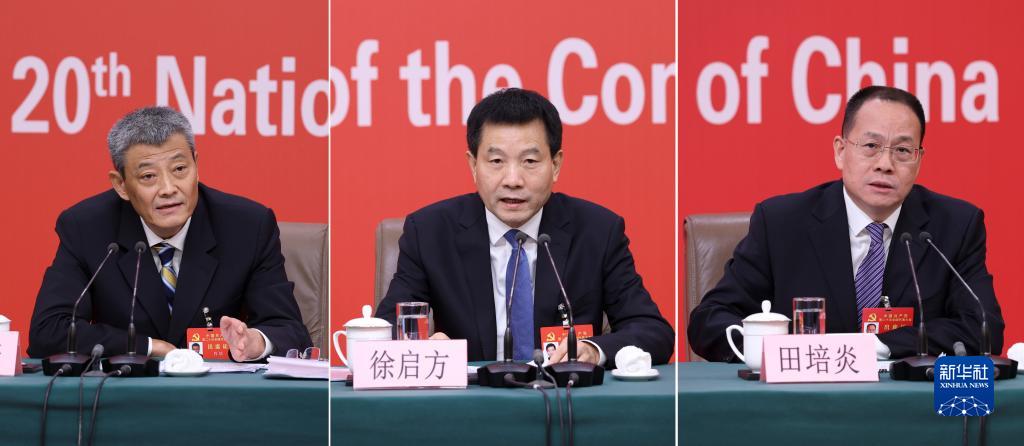 10月17日,中國共產黨第二十次全國代表大會新聞中心舉行記者招待會,請中央紀委副書記、國家監(jiān)委副主任肖培,中央組織部副部長徐啟方,中央政策研究室副主任田培炎介紹堅定不移全面從嚴治黨,深入推進新時代黨的建設新的偉大工程有關情況,并回答記者提問(拼版照片)。