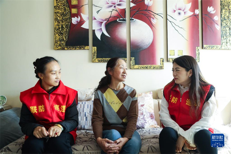 10月16日,青海省西寧市城西區(qū)文匯路街道文亭巷社區(qū)黨委書(shū)記劉翠青(右)到社區(qū)居民家中走訪。新華社記者 張龍 攝