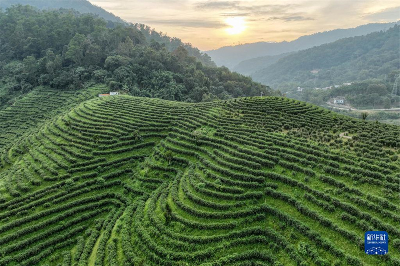 這是10月17日拍攝的海南省五指山市水滿鄉(xiāng)的茶園(無(wú)人機(jī)照片)。新華社記者 張麗蕓 攝