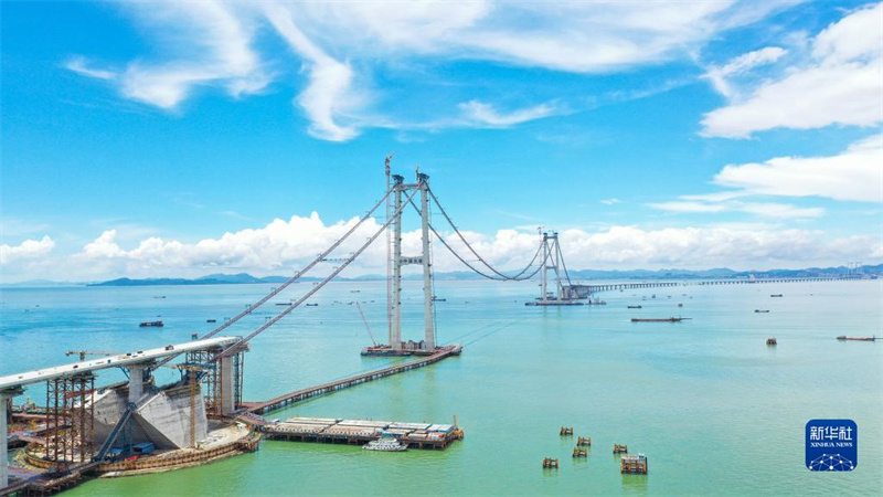 這是深中通道關(guān)鍵控制性工程伶仃洋大橋的建設(shè)現(xiàn)場(chǎng)(10月16日攝,無(wú)人機(jī)照片)。新華社發(fā)(張政 攝)