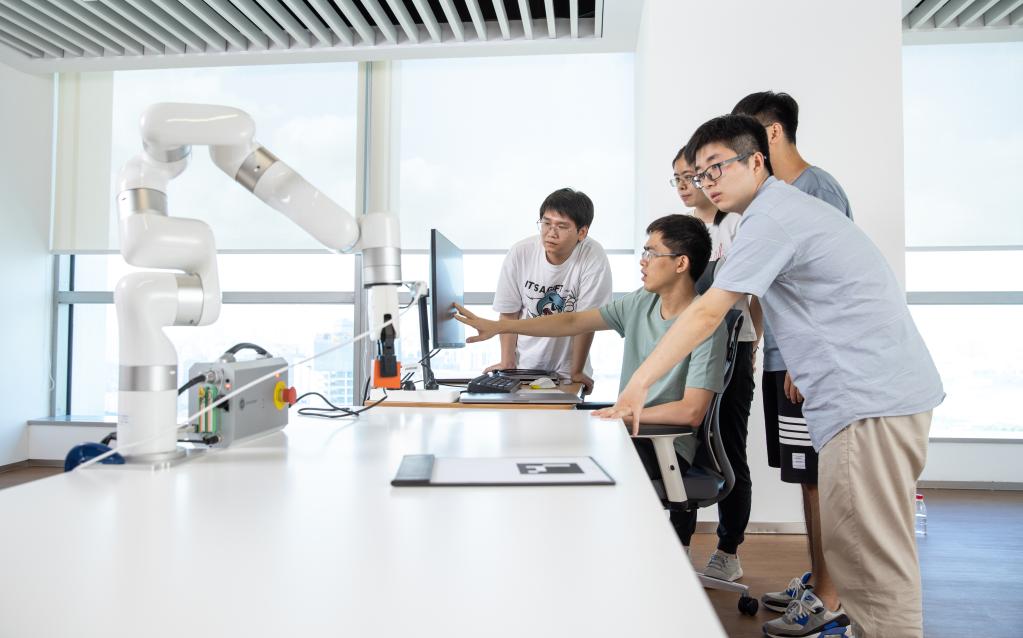 圖為吳翼(左三)及其團隊正在開展可泛化的機械臂控制相關(guān)科研工作。