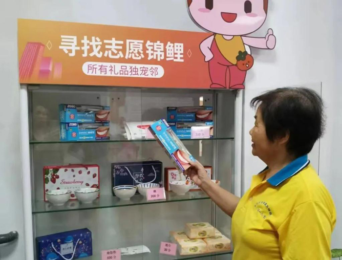 11月10日,社區(qū)居民在“全齡段公益時(shí)間銀行”用自己的志愿服務(wù)積分兌換獎(jiǎng)品。(受訪社區(qū)供圖)