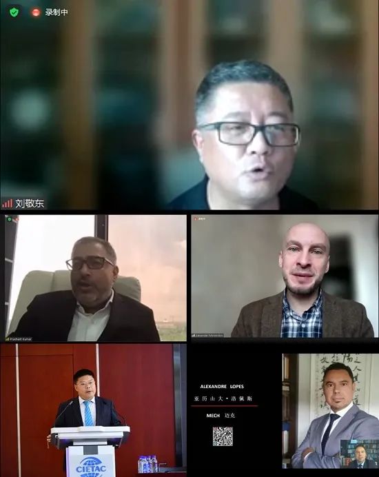 (從左至右、從上至下依次為主持人中國(guó)WTO法學(xué)會(huì)副會(huì)長(zhǎng),中國(guó)社會(huì)科學(xué)院國(guó)際經(jīng)濟(jì)法室主任劉敬東教授,發(fā)言嘉賓印度Trinaya律師事務(wù)所合伙人、印度律師協(xié)會(huì)主席Prashant Kumar先生、俄羅斯莫斯科國(guó)立大學(xué)法學(xué)院的 Alexander E.Molotnikov副教授、德和衡律師事務(wù)所主任、威海國(guó)際仲裁院院長(zhǎng)劉克江博士、巴西麥克中國(guó)市場(chǎng)研究中心主席Alexandre Lopes先生)